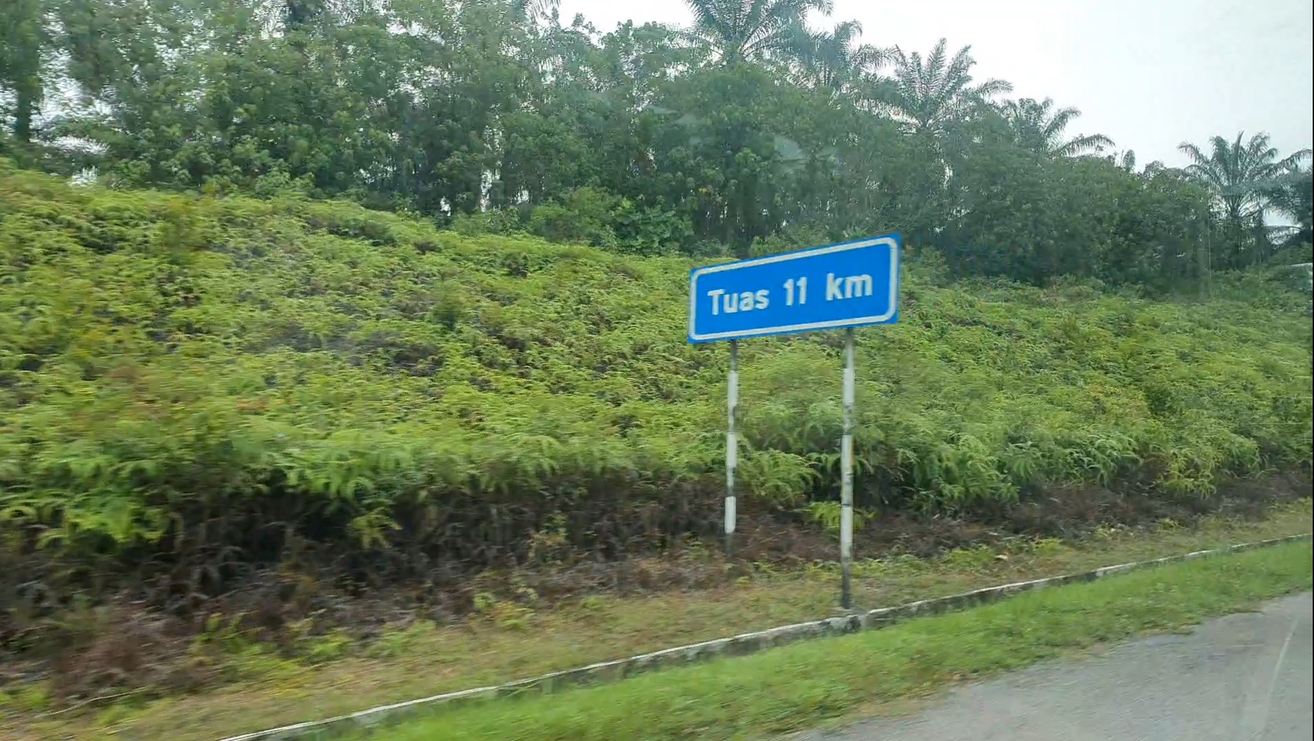 말레이시아에 싱가포르 투우스 표지판이 있다. 버스를 타고 투우스 체크포인트로 간다.