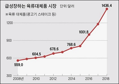 대체육 시장은 미국과 유럽에서 빠르게 성장하고 있다. 2025년 기존 육고기 소비량이 정점을 맞고 점차 대체육에 그 자리를 차지할 것이라는 전망도 있다.